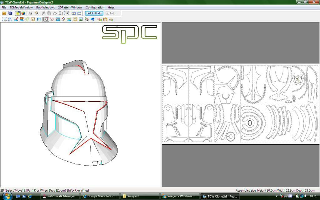 Part 1 of the pepakura clone trooper helmet (clone wars style)clone armor .